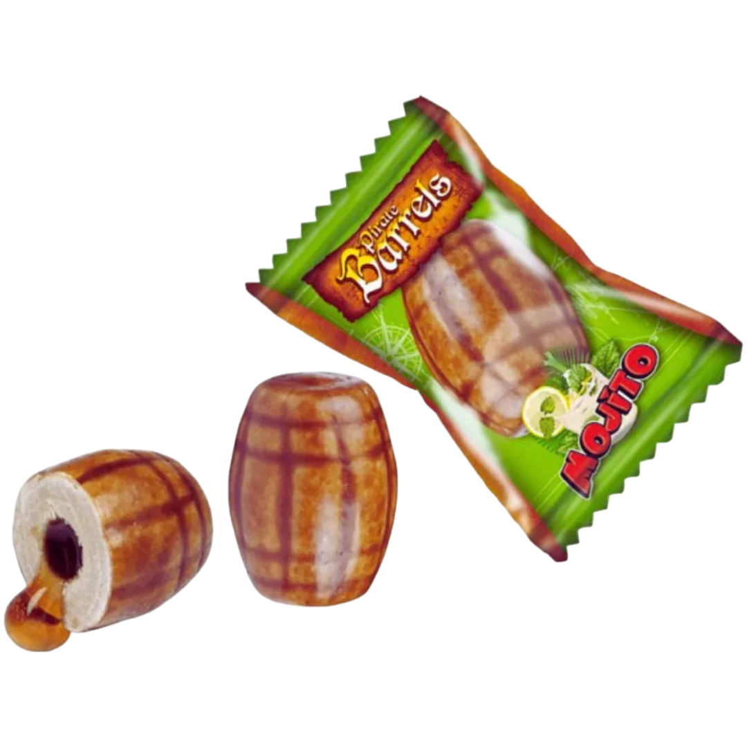 Burst open this pirate barrel with your teeth and get ready for a seriously slimy greeting - it's packed full of mojito-flavoured juice!