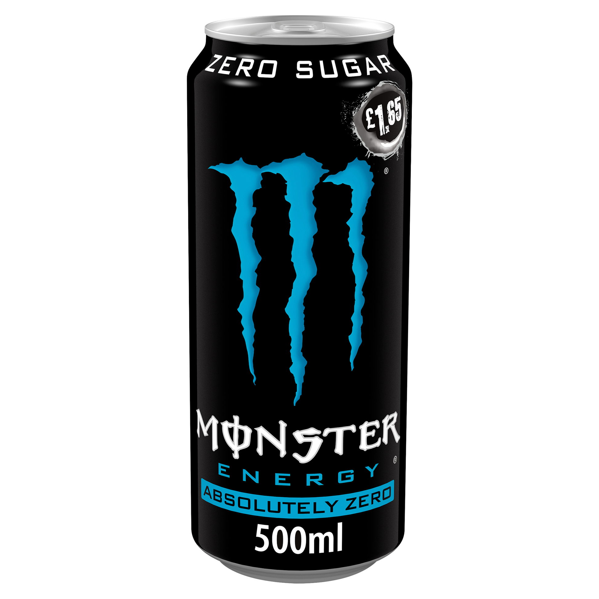 Monster Energy Absolutely Zero 500ml can, zero sugar great tasting energy drink with energy blend, 160mg caffeine The Monster Energy blend combined with caffeine gives you the energy you need in a smooth easy drinking flavour. Serve cold for maximum refreshment.