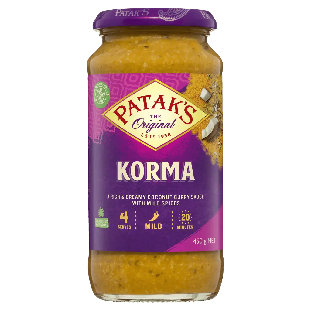 Patak 的 Korma 咖哩醬是一種非常溫和、濃鬱的奶油椰子咖哩醬,帶有芳香的香料。
