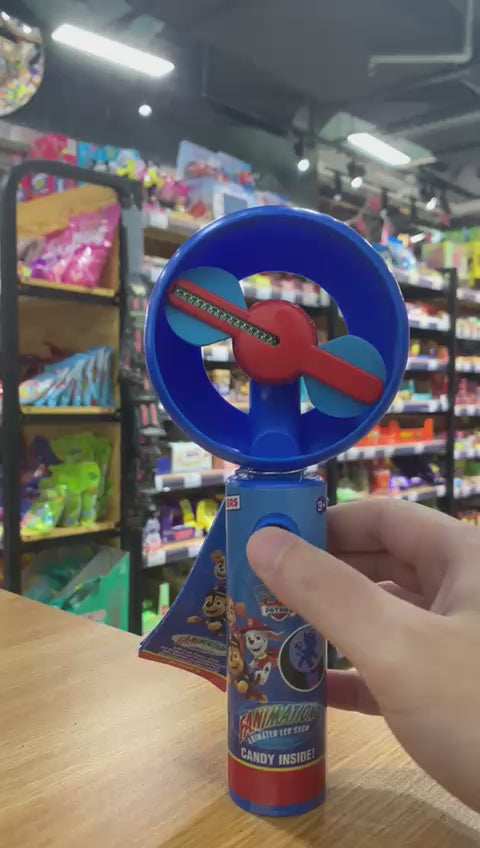 Brand new technology lets you have an animated LED show right in your hand! Press the button and watch the Paw Patrol characters run and play in the LED video. In the handle you will find 8g fruit flavoured pressed dextrose candy.