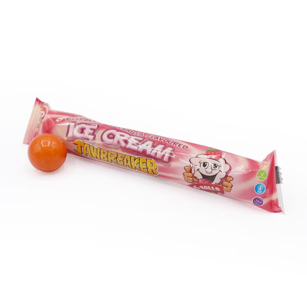 Share the summer fun with these ice cream flavour Jawbreakers by Zed Candy. Delicious layers of raspberry and vanilla ice cream flavour hard candy with a sweet, chewy bubblegum centre. Each pack holds 6 candy balls.