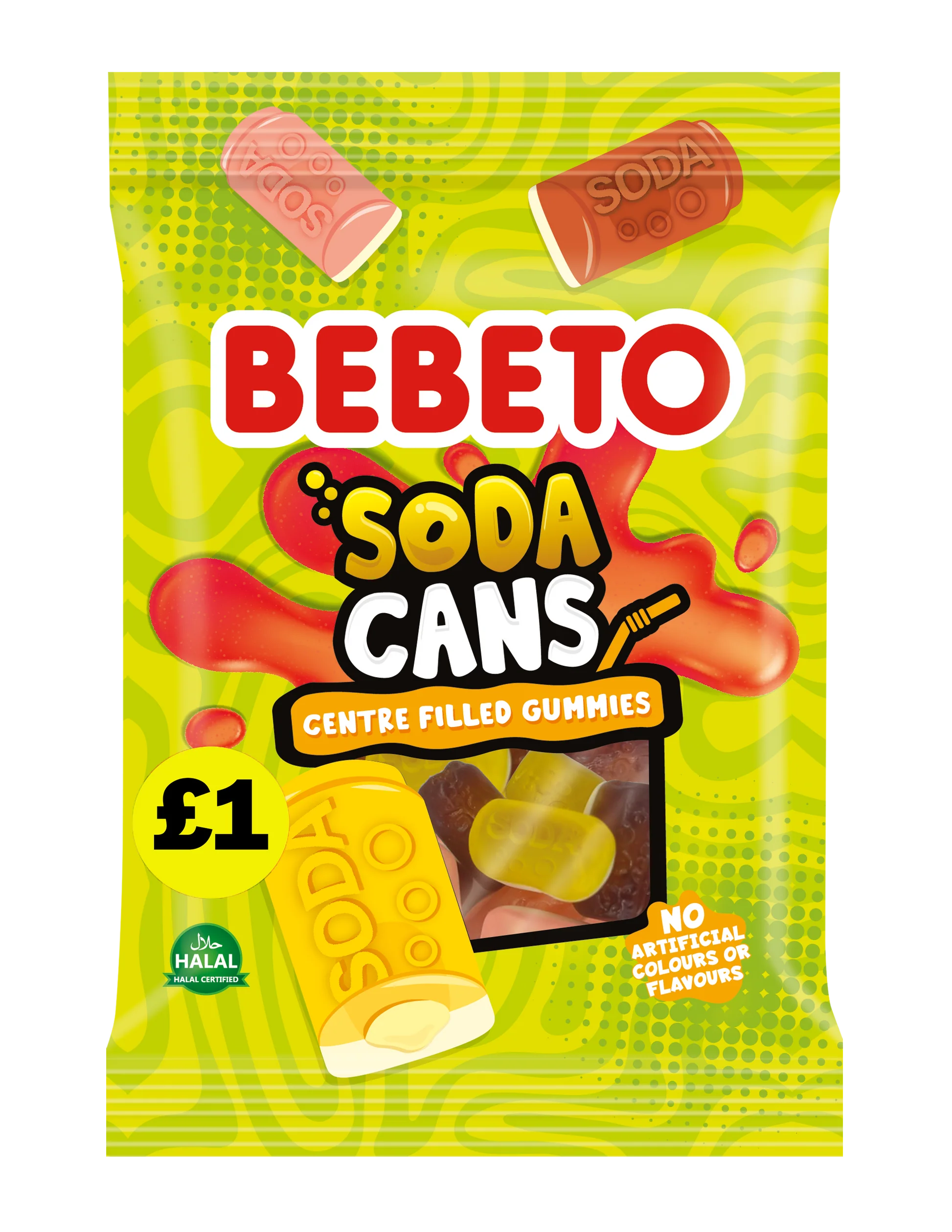 Pop open pure excitement! Bebeto Centre Filled Soda Cans burst with bold, nostalgic flavor in every bite!